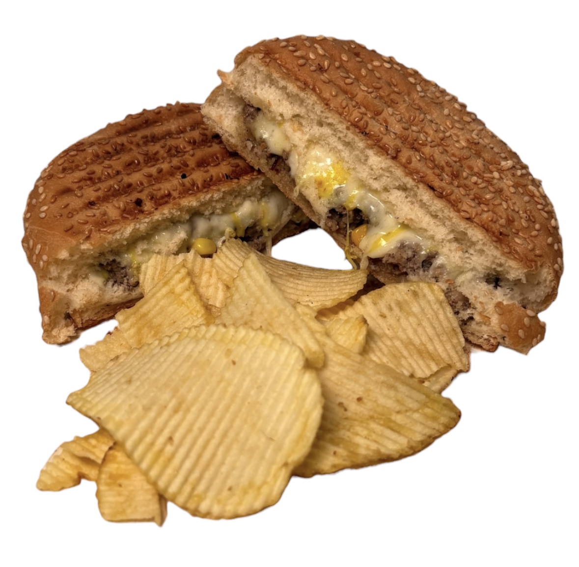 ۱۰۰ گرم گوشت + پنیر مطهر + ذرت + نان مک + سوپر چیپس